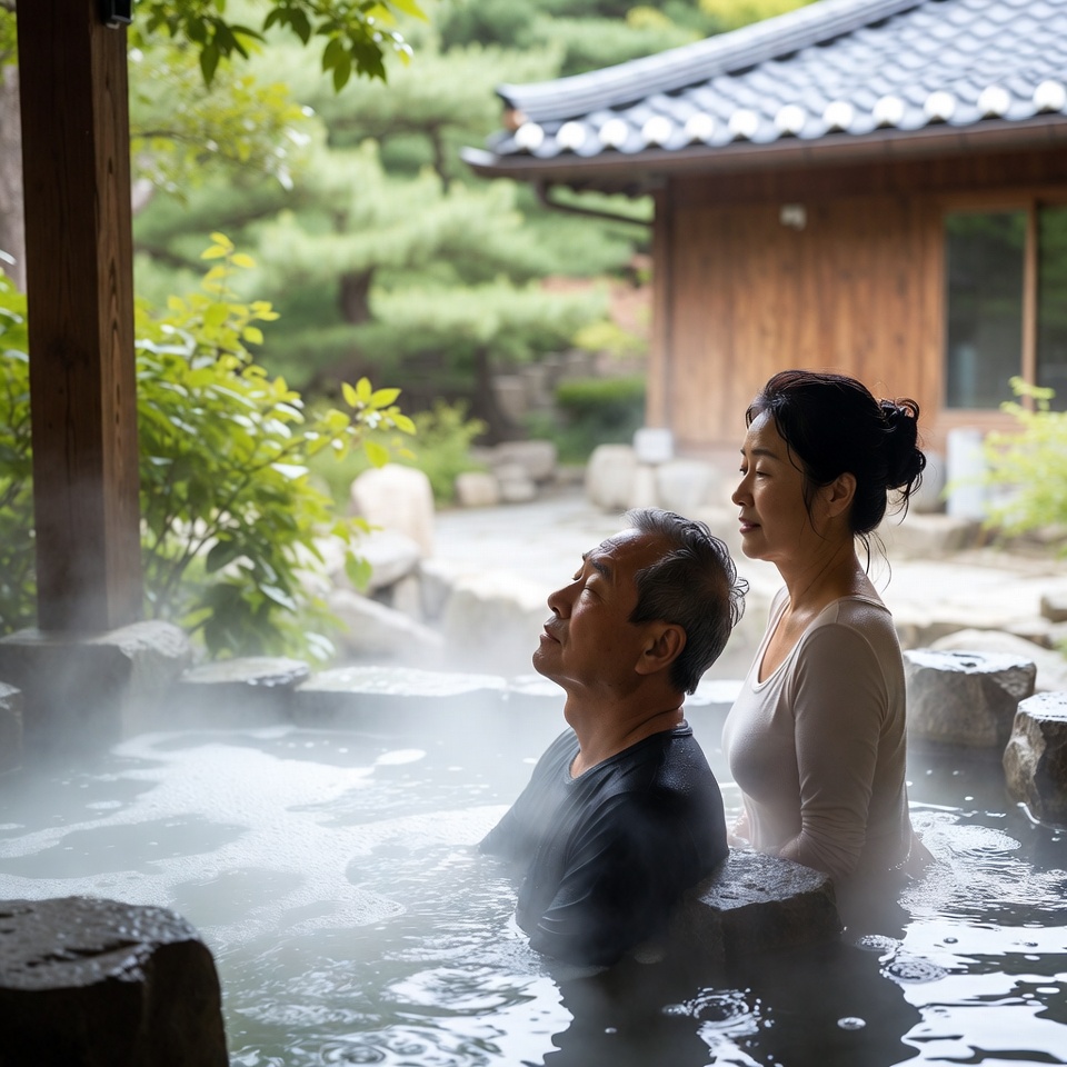 따뜻한 온천물에 몸을 담그면 피로가 풀리고 관절도 편안해진다.